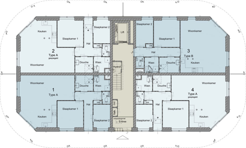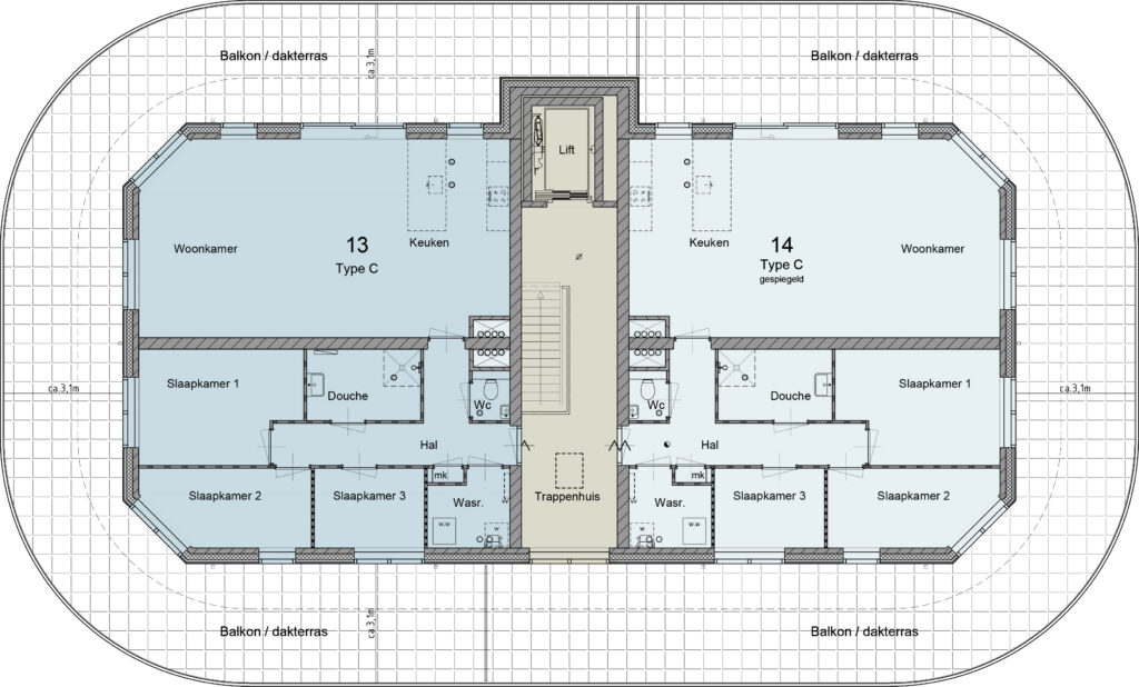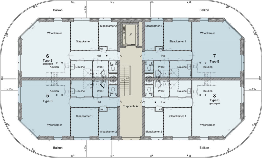 Kies uit drie verschillende woningtypen: Type A en B bieden circa 67 m² woonoppervlak met 2 slaapkamers en een riante buitenruimte. De penthouses (type C) zijn liefst ca. 100m2 met 3 slaapkamers en een dakterras van ca. 107m2 of ca. 114m2!