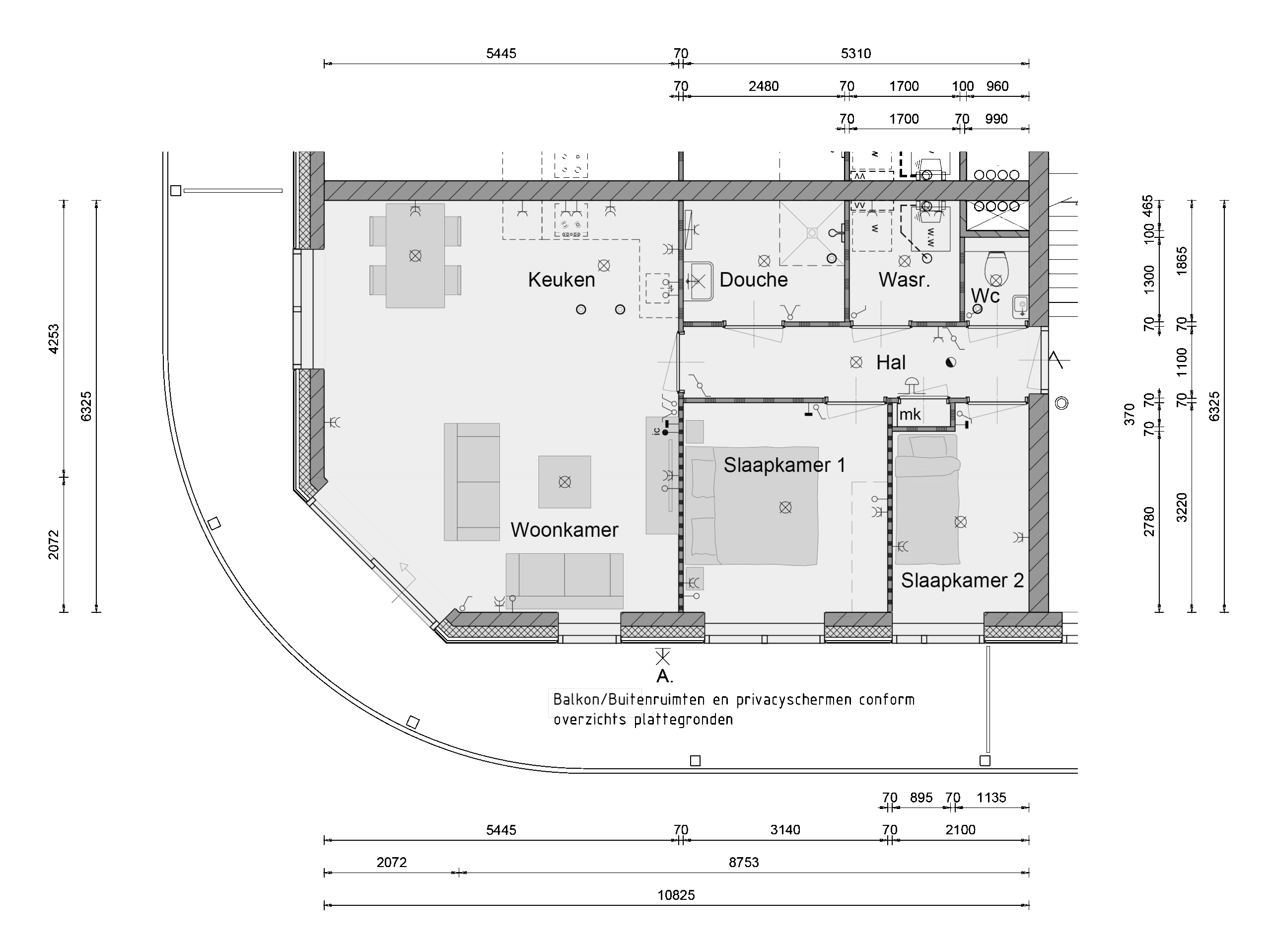 Eén parkeerplaats, zie afbeelding terreininrichting